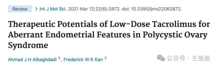他克莫司我们都知道是一种免疫抑制剂,可以抗炎,2021年有一篇研究认为低剂量他克莫司可以治疗多囊卵巢综合征患者异常子宫内膜特征,让我们一起来看看。