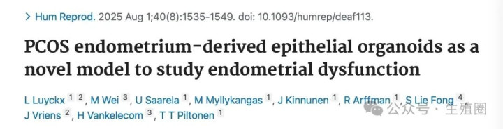 PCOS endometrium-derived epithelial organoids as a novel model to study endometrial dysfunction. Hum Reprod. 2025 Aug 1;40(8):1535-1549. doi: 10.1093/humrep/deaf113.